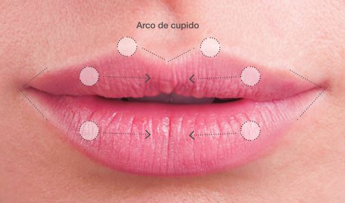 . Para el perfilado de labios (perfiloplastia), aplicamos el producto siguiendo una línea marcada sobre el borde del labio superior para eliminar arrugas, definir el arco de Cupido consiguiendo una mayor proyección e hidratación labial. Este es uno de los aspectos que más gusta definir porque otorga un aspecto más sensual.